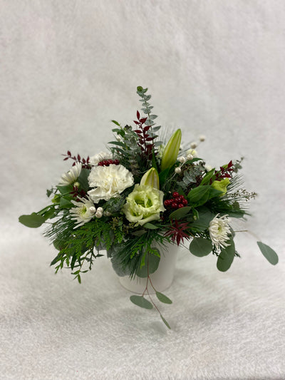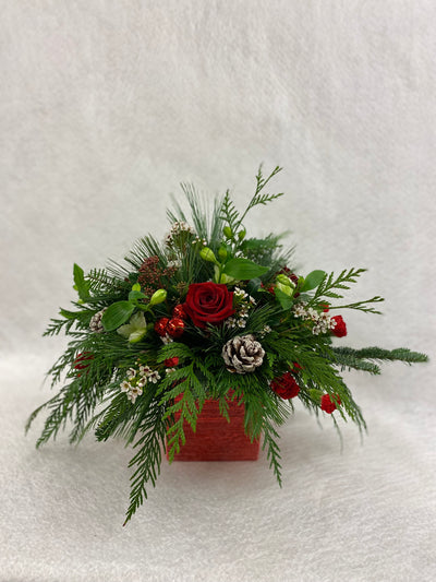 Send the warmth of the holidays with these fresh floral items! Fragrant greens, long lasting blooms, baubles and berries... all in a beautiful presentation. While they make great gift ideas for corporate colleagues, friends and family, they would also make wonderful additions to your own home decor for the holidays.